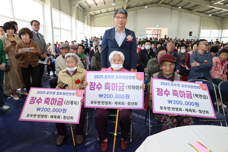 특히, ‘경로위안잔치’라는 의미를 담아, 포두면의 100세 이상 장수 어르신 세 분에게 장수 축하금이 전달됐다. 영예의 주인공은 박연심, 박학아, 신계옥 어르신으로, 참석자들의 큰 박수와 축하를 받았다.