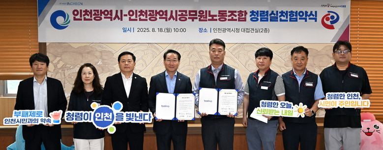 [인천 세계타임즈=심하린 기자] 인천광역시(시장 유정복)는 8월 18일 시청 대접견실에서 인천시공무원노동조합(위원장 신태민)과 함께 ‘청렴실천 협약’을 체결하고 간담회를 개최했다고 밝혔다.