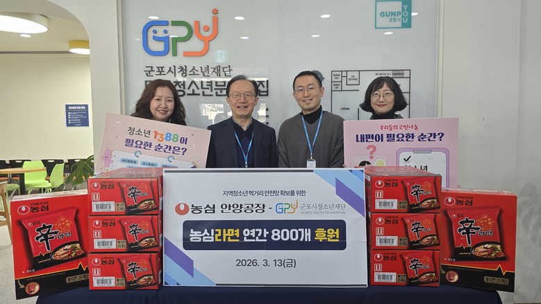 기부받은 라면은 군포시 당동 생활권 청소년을 중심으로 당동청소년문화의집 오픈주방과‘1388 공유냉장고 1호점’을 통해 결식 우려 아동·청소년에게 제공되며, 향후 공장 견학 등 진로 체험 프로그램으로 협력이 확대될 예정이다.