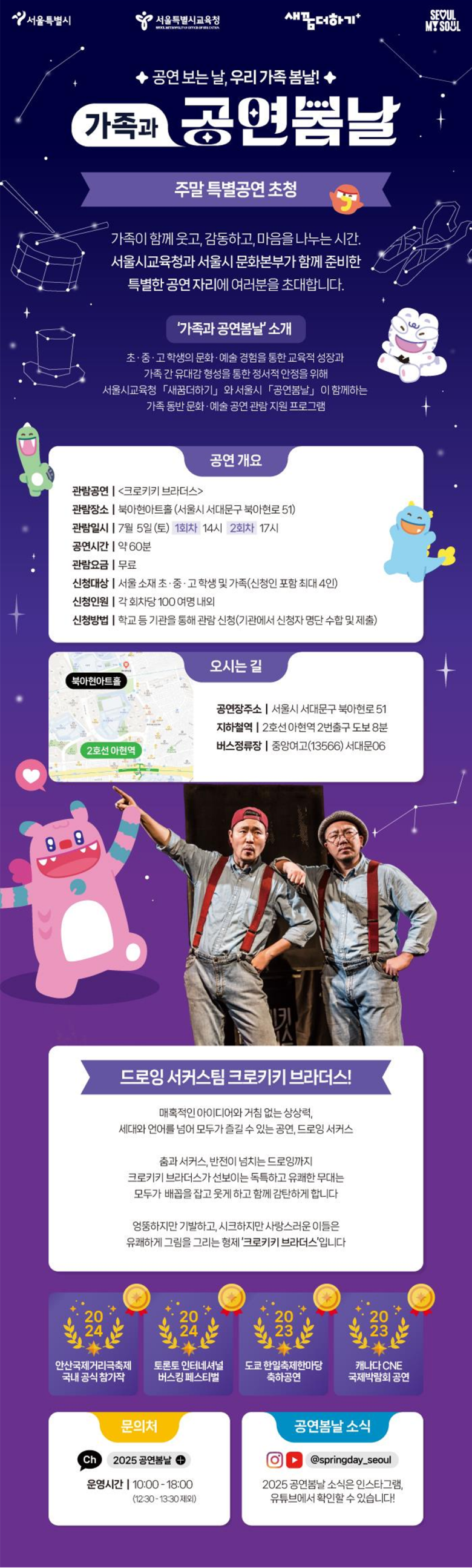 가족과 공연봄날'은 오는 7월 5일 첫 공연을 시작으로 가족이 함께 공연을 관람하며 문화예술을 즐기고 소통할 수 있도록 기획되었다. 특히 이 프로그램은 서울시의 대표 문화예술 정책인 '공연봄날'과 연계하여 운영된다.