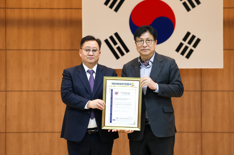 이번 인증은 인천시교육청의 안전·보건 관리체계가 국제 표준 수준으로 운영되고 있음을 공식적으로 인정받은 것으로 글로벌시스템인증원 박성진 원장이 참석해 인증서를 전달했다.