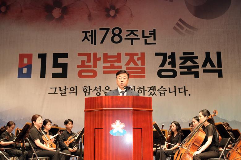 이날 행사는 독립유공자 유족과 광복회원, 국회의원, 도·시 의원, 시민 등 600여 명이 모인 가운데 기념사, 경축사, 광복절 노래 제창, 만세삼창 등의 순서로 진행됐다.