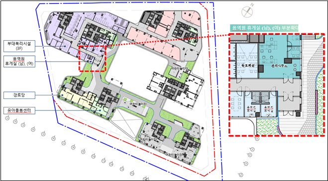 ㅇ 적용방법: 건물 관리 용역원 예정자 수를 파악하여 적정 규모의 용역원 휴게시설 설치도면