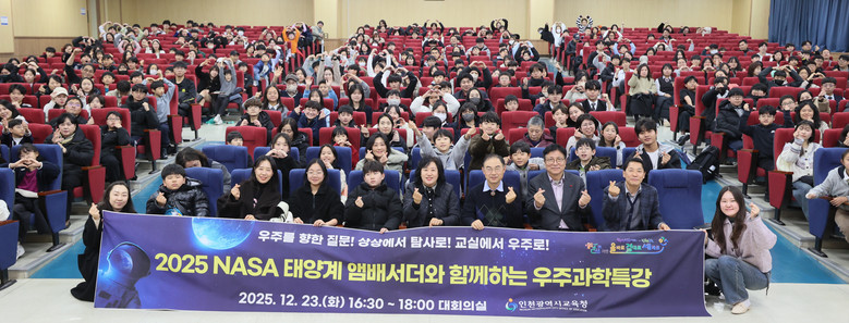 [인천 세계타임즈=심하린 기자] 인천광역시교육청(교육감 도성훈)은 관내 초·중·고등학생 450명을 대상으로 NASA JPL 태양계 앰배서더인 폴윤 교수의 우주과학 특강 ‘NASA 우주 탐사와 우주 경제’를 운영했다.