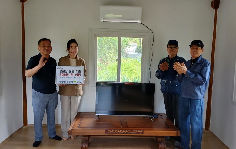 [순천시 세계타임즈=우덕현 기자] 순천시 승주읍은 나라건설(대표이사 소종영)에서 지난 14일 승주읍 대장마을과 구수마을 각 유상각에 TV, 에어컨, 냉장고 등 총 300만 원 상당의 생활가전을 기탁했다고 밝혔다.