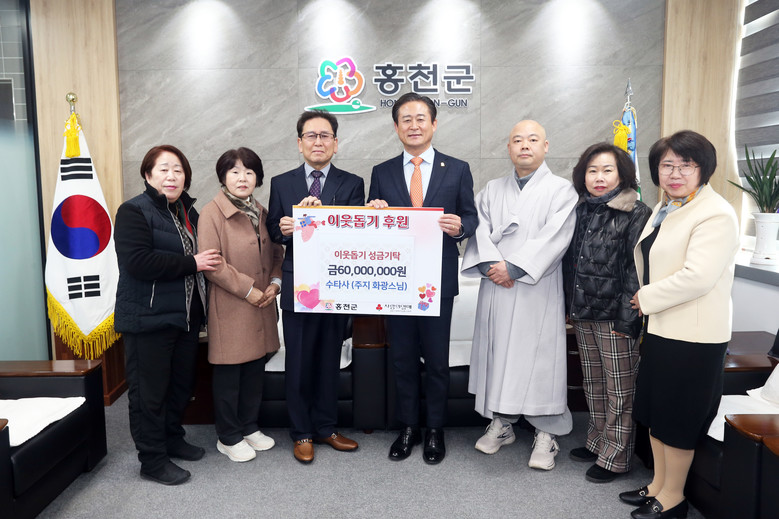 [홍천군 세계타임즈=김민석 기자] 수타사(주지 화광스님)는 2월 21일 홍천군청을 방문하여 홍천지역 청소년을 위한 장학금 6,000만 원을 기탁했다.