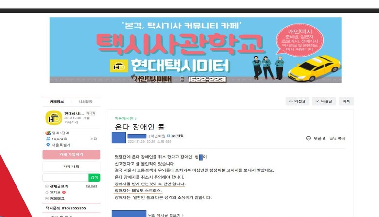 한편, 택시기사 커뮤니티에는 ‘장애인콜 취소했다고 장애인 병x이 신고했다. 장애자콜 받지 않는 것이 속 편하다. 장애자는 태워도 스트레스’라는 글이나