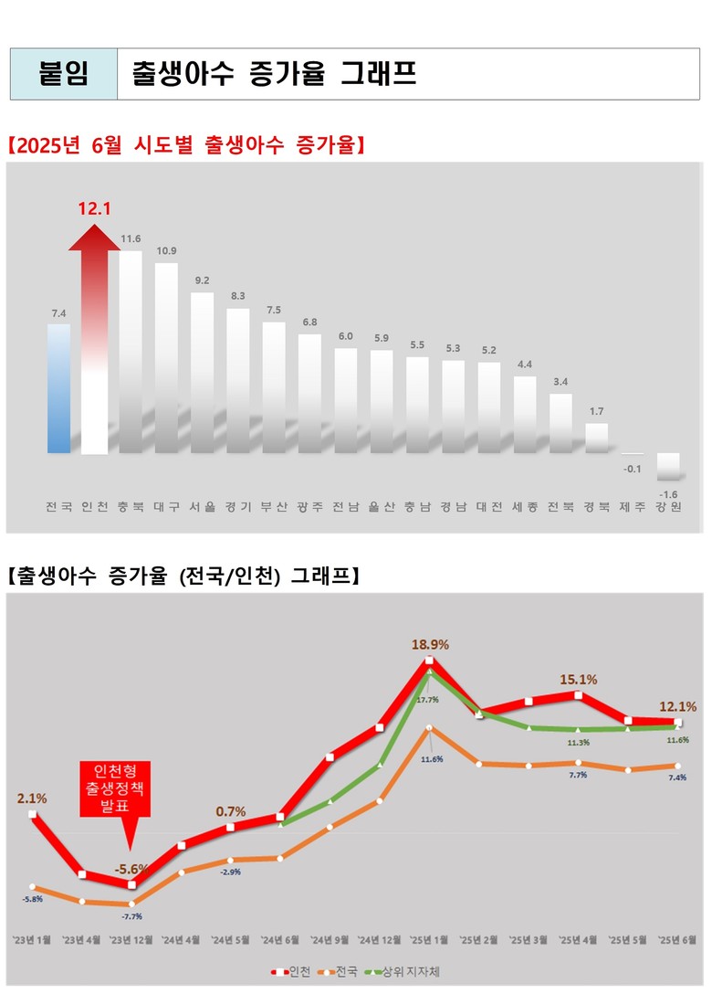 [인천 세계타임즈=심하린 기자] 인천광역시(시장 유정복)는 2025년 상반기 출생아 수 증가율에서 전국 1위를 기록했다고 밝혔다.