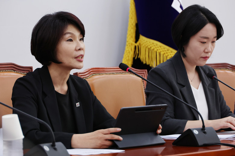 더불어민주당 한정애 정책위 의장이 24일 서울 여의도 국회에서 2024년 회계연도 결산 심사와 관련해 기자간담회를 하고 있다. 2025.8.24