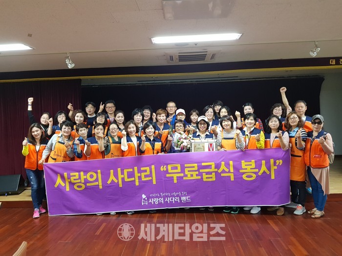[대전=세계타임즈 이장성 기자] 다양한 봉사활동을 하고 있는 5천명 봉사 빅밴드 사랑의 사다리 밴드(리더 이정제)는 27일 오전 10시부터 대전광역시 노인복지관(관장 유한봉)에서 열린 “제21회 노인의 날” 행사에서 음식 준비 및 설거지 봉사로 사회적 효행을 실천 하였다.