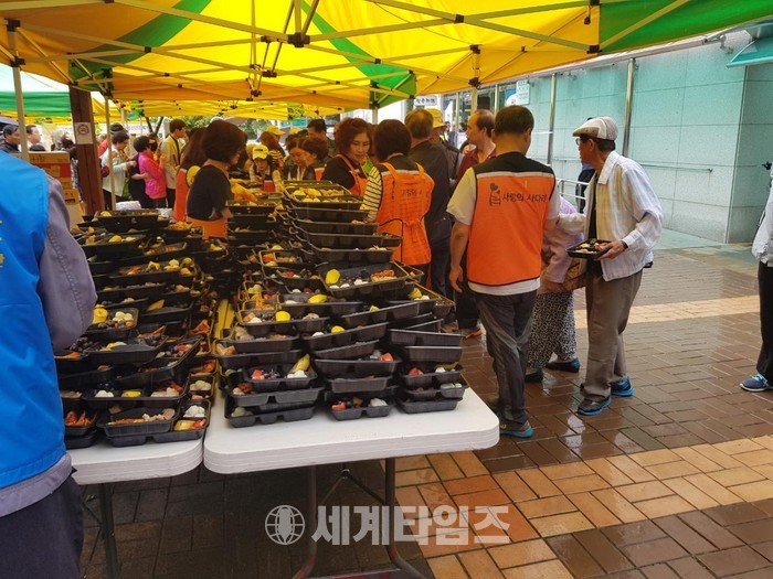 이날 봉사에는 유희자 나눔봉사단장,박인옥 다문화봉사단장, 김호현 산악회장을 비롯해서 회원 40여명이 주차장에서는 천 여명의 어르신들 간식준비와 전달을 하였으며,2층과 주방 안에서는 설거지 및 음식상 차리기 봉사를 하였다.