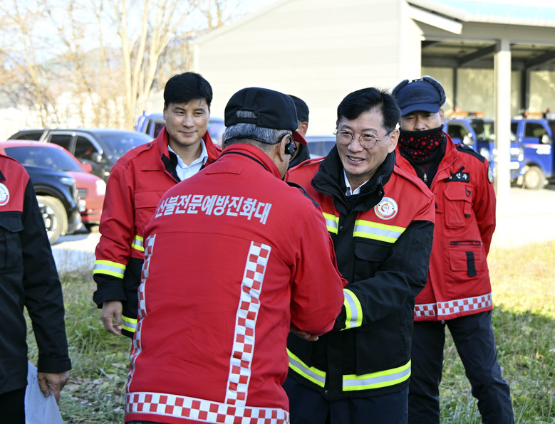 이번 방문은 최근 대원들이 전북 산불지상진화 경연대회에서 우수한 성적을 거두며 전문성을 입증한 데 이어, 본격적인 건조·강풍 시기를 대비해 현장 대응 태세를 점검하고 대원 사기를 높이기 위해 마련됐다.