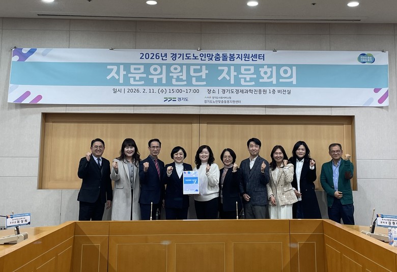 | ▲2026년 경기도노인맞춤돌봄지원센터 자문위원단 자문회의 이후 기념사진을 촬영 중이다.(사진=경기도사회서비스원) |
