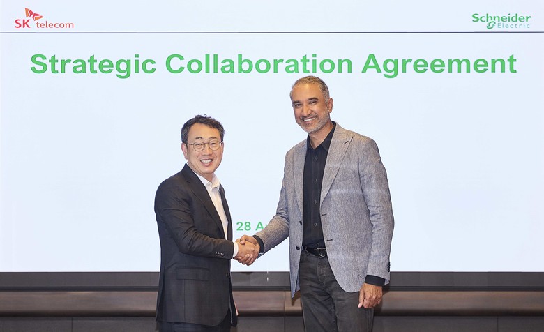 SK텔레콤은 최근 세계적인 AI DC(데이터센터) 솔루션 기업인 슈나이더 일렉트릭(Schneider Electric)과 ‘SK AI 데이터센터 울산’ 구축을 위한 MEP장비 통합 구매 계약을 체결하고, 양사의 전략적 협력 범위를 확대한다는 내용의 협약을 체결했다고 31일 밝혔다.