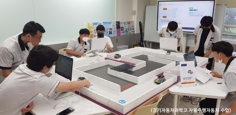 현재 경기자동차과학고 ‘미래자동차과’는 1학급에서 3학급으로 확대 운영 중이며, 학과 재구조화 사업 후 미래자동차 실습실 신설, 전기차 전용 실습 베이 구축, 아이오닉 전기자동차, 전기자동차 시뮬레이터, 하이브리드 자동차 시뮬레이터 등 전기자동차 실습용 장비 및 고전압 정비 안전 보호장비 구축하여 학생들을 지원했다.