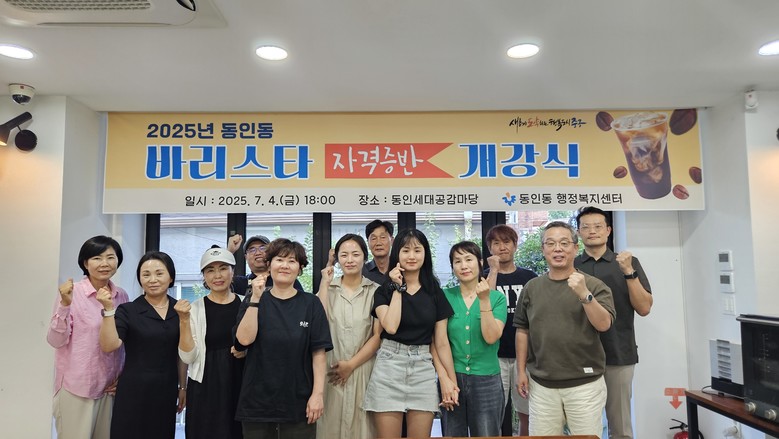 [중구 세계타임즈=한윤석 기자] 대구 중구 동인동행정복지센터(동장 이상무)는 지난 4일 동인세대공감마당국채보상로149길 81)에서 ‘동인동 바리스타 교실(자격증반)’ 개강식을 개최했다.