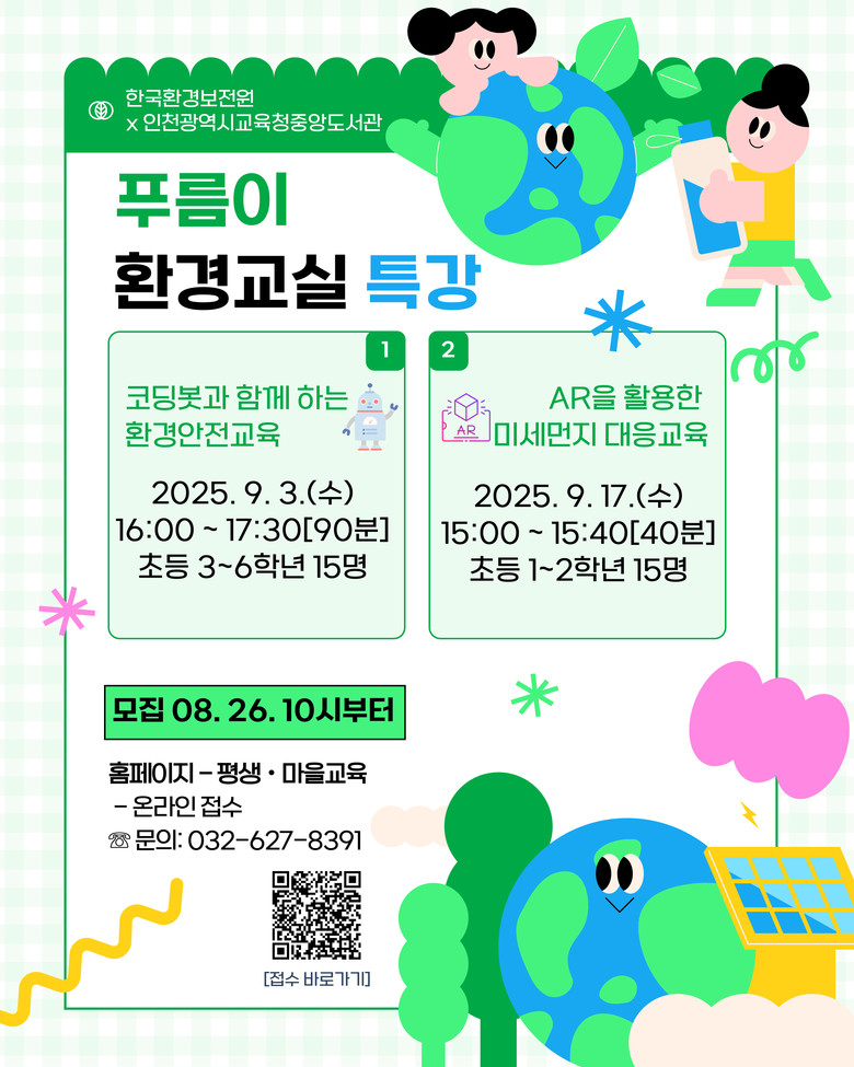 또한 초등학교 1~2학년 학생 15명을 대상으로 한 수업은 9월 17일(수) 오후 3시부터 3시 40분까지 운영되며, ‘AR을 활용한 미세먼지 대응교육’을 통해 생활 속 환경문제에 대응하는 방법을 쉽게 이해할 수 있도록 할 예정이다.