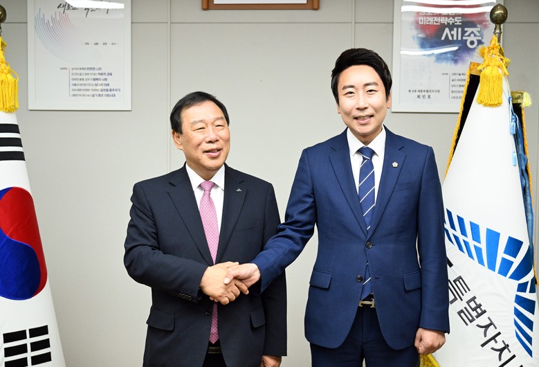 [세종 세계타임즈=이채봉 기자] 임채성 세종특별자치시의회 의장은 19일 최민호 세종시장을 만나 ‘행정수도 세종 완성’ 대선 공약의 실현 방안에 대해 논의했다.
