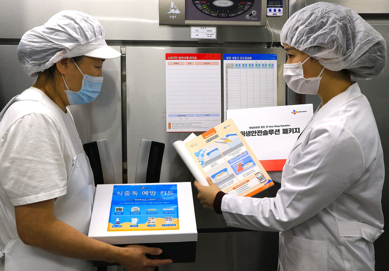 이날 CJ프레시웨이 안전 전문가는 급식 영양사와 조리사를 대상으로 식재료 검수 보관, 세척·소독, 냉장·냉동 온도, 배식 관리 등 식품위생은 물론 화재, 베임, 미끄러짐 등 사고를 예방하는 산업 안전 솔루션을 제공했다. 또한 조리실 구역별로 자체 제작한 안전 매뉴얼 스티커와 교육 영상 QR 코드를 부착하고, 교체가 필요한 주방 설비를 지원하는 등 조리 환경 개선에도 힘썼다.