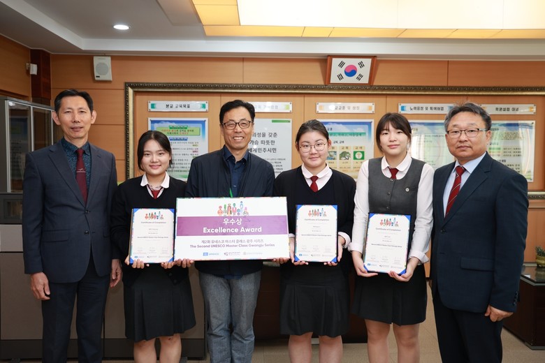 [광주 세계타임즈=손권일 기자] 광주여자상업고등학교 학생들이 제13회 세계인권도시포럼에서 진행된 ‘유네스코 마스터 클래스 광주 시리즈’에서 우수상(광주시장상)을 수상했다.