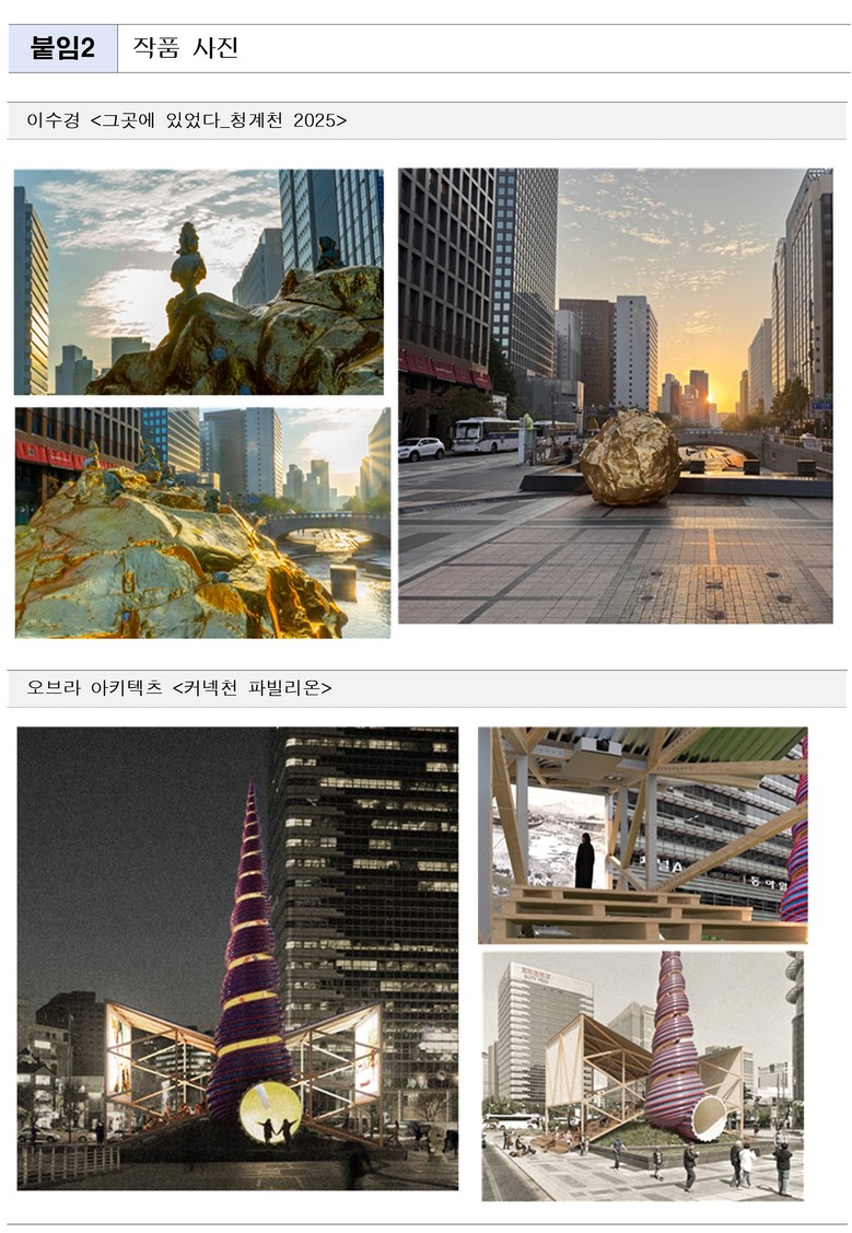 전시와 이벤트에 대한 정보는 2025 청계천 공공미술 프로젝트 누리집(seoulart2025.com)에서 확인할 수 있다.