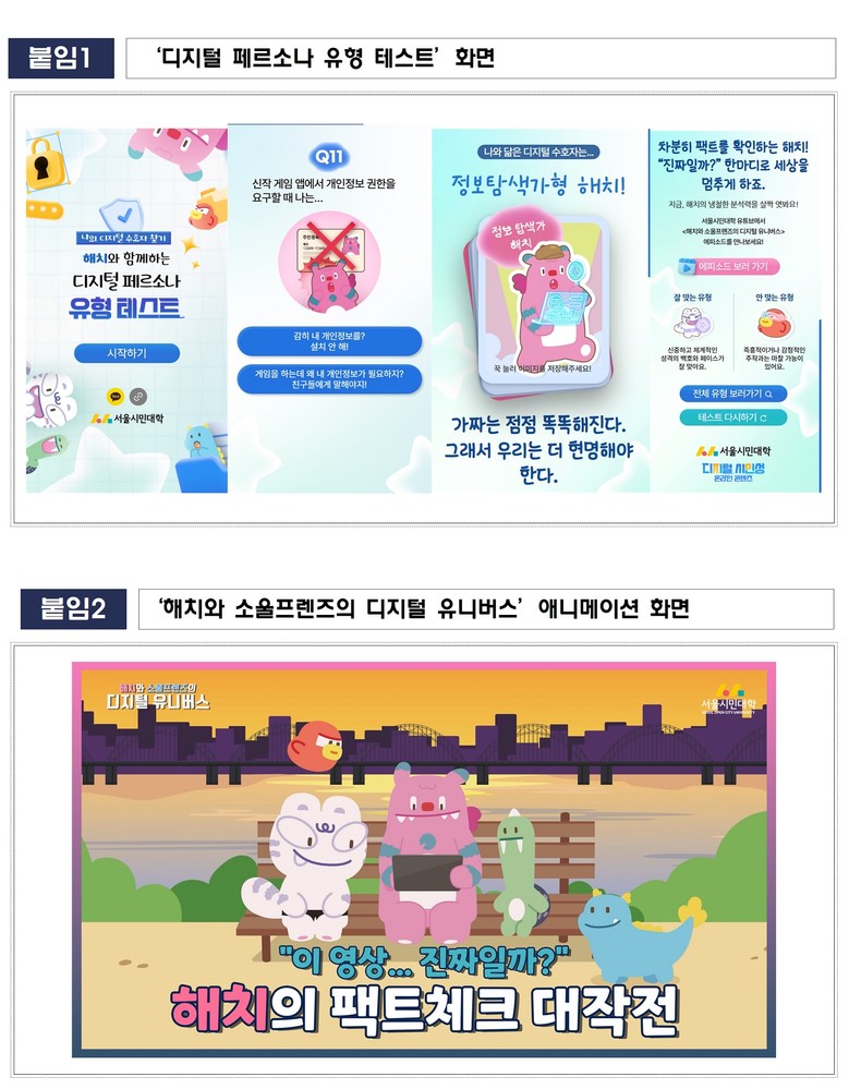 - 시 대표 캐릭터 ‘해치와 소울프렌즈’ 세계관 활용해 쉽고 재미있는 디지털 시민성 콘텐츠 제공