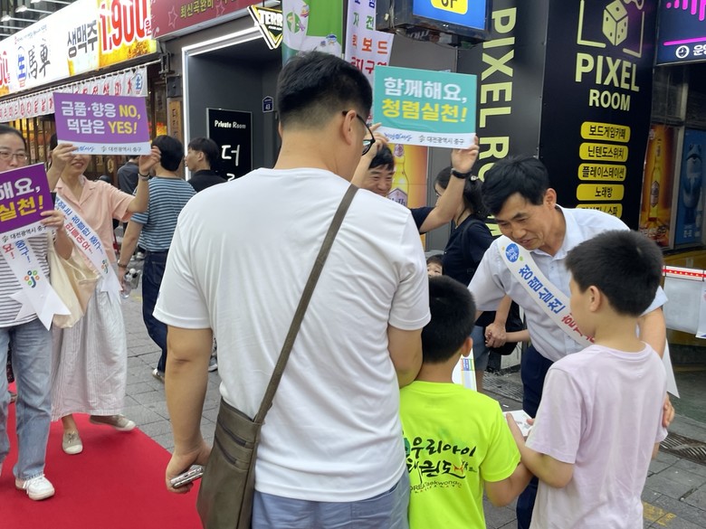 [중구 세계타임즈=이채봉 기자] 대전 중구(구청장 김제선)는 0시 축제 기간을 맞아 공직사회 청렴 실천 의지 확산과 식중독 예방 홍보를 위한 합동 캠페인을 8일 대전 0시 축제 행사장인 중앙로 무대 및 먹거리존 일대에서 실시했다고 밝혔다.