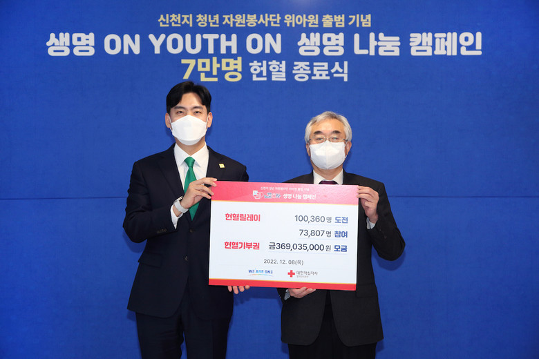 [세계타임즈 백진욱 기자]청년 자원봉사단 위아원(We Are One, 대표 홍준수)이 8일 헌혈 종료식을 가지며 85일간 7만 명 단체 헌혈이라는 사상 최다 규모의 헌혈 캠페인을 전개한 대장정을 마무리했다.