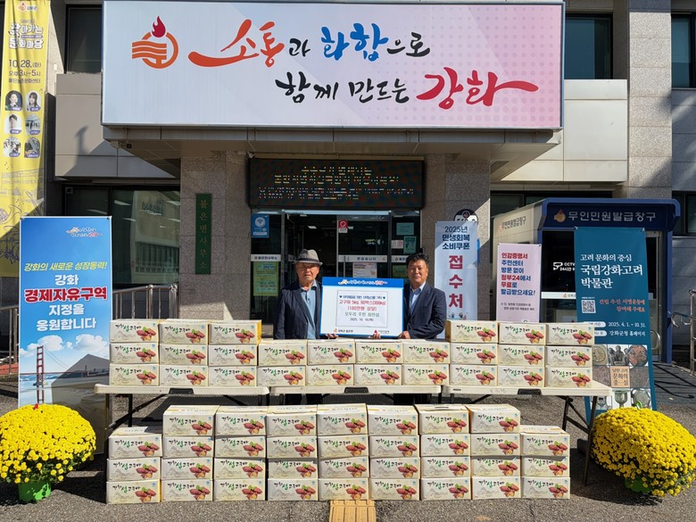 [강화군 세계타임즈=심하린 기자] 강화군 불은면(면장 윤승구)은 지난 16일, 오두리 주민 최인섭 씨가 직접 재배한 180만 원 상당의 고구마 5kg 60박스를 어려운 이웃을 위해 기탁했다고 밝혔다.