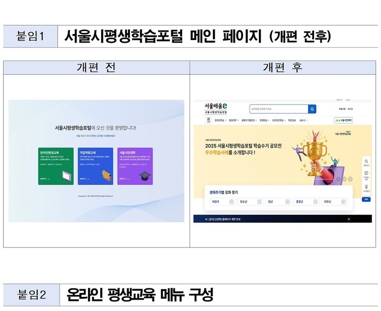이번 개편에서는 접속 단계를 축소하는 디자인 개편과 함께, 연령별 맞춤형 강좌를 한눈에 찾는 ‘생애주기별 강좌 찾기’ 서비스를 메인에 배치해 접근성을 높였다.