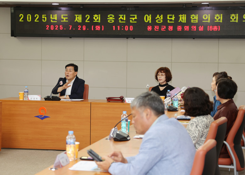 [옹진군 세계타임즈=심하린 기자] 옹진군(군수 문경복)은 지난 29일, 군청 중회의실에서 ‘옹진군여성단체협의회 회의’를 개최하고 하반기 중점사업 추진을 위한 논의를 진행했다. 이날 회의에는 옹진군 여성단체장 8명이 참석했으며, 문경복 군수도 자리를 함께해 여성 지도자들과 소통하는 시간을 가졌다.