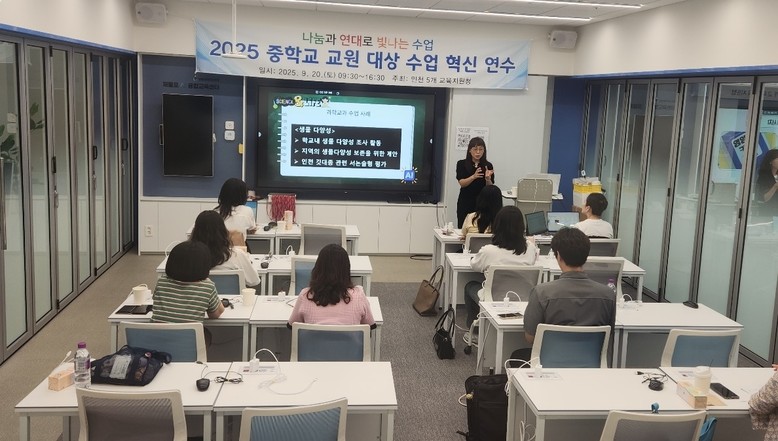 [인천 세계타임즈=심하린 기자] 인천광역시교육청(교육감 도성훈)은 20일 제물포AI융합교육센터에서 관내 5개 교육지원청 주관으로 ‘2025 중학교 교원 대상 수업혁신 연수’를 운영했다고 밝혔다.