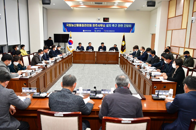 [완주=세계타임즈 = 김윤영 기자] 완주군의회(의장 서남용)에서 17일 국립농산물품질관리원(이하 국립농관원) 완주분소 설치와 관련한 간담회를 개최했다.