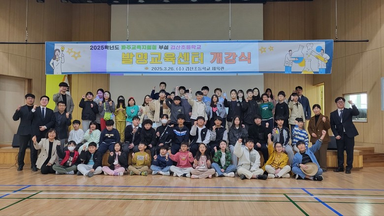 송준호 파주교육지원청 교육국장은 학생들에게 미래에 필요한 인재상을 설명해주며 세상에 좋은 영향력을 끼치는 인재가 될 것이라는 기대감과 함께 2025학년도 파주교육지원청부설 검산초 발명교육센터의 새로운 시작을 알렸다.