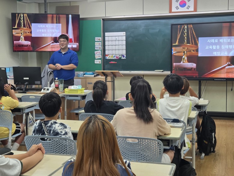 주요 내용은 △교육활동보호의 필요성 △학교 현장에서 발생할 수 있는 교육활동 침해 사례 △교육활동 침해 유형과 조치 이해 △학생 스스로 지켜야 할 학교 생활 규칙 등이며, 학생 참여형 토론과 사례 나눔으로 이해를 높이고 있다.