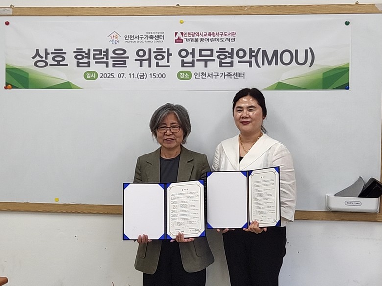 [인천 세계타임즈=심하린 기자] 인천광역시교육청서구도서관(관장 정연순)에서는 11일 인천서구가족센터와 업무협약을 맺고 다문화가정을 위한 복지·문화 서비스를 공동 추진한다.
