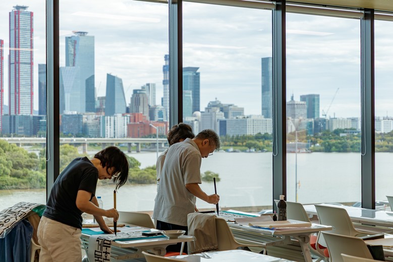 | ▲ 한강 조망이 장점인 마포365구민센터에서 주민들이 서예 교육을 받고 있다. |