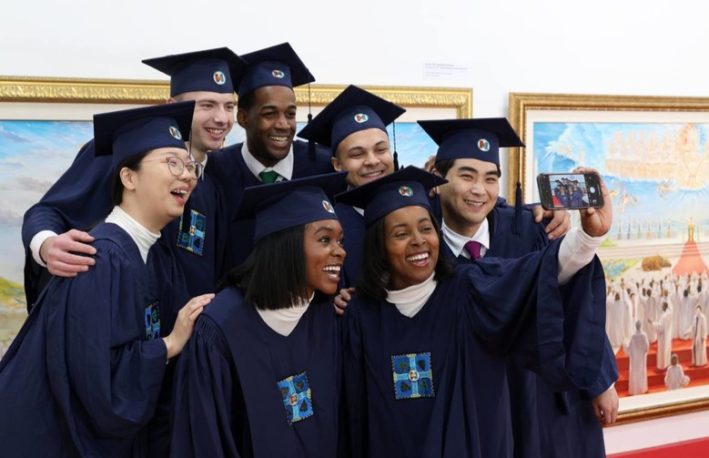 | ▲ 지난 2일 신천지예수교 증거장막성전 청주교회에서 열린 ‘시온기독교선교센터 116기 수료식’에 참여한 수료생들이 서로의 수료를 축하하며 기념촬영을 하고 있다. [사진 제공 = 신천지예수교회] |