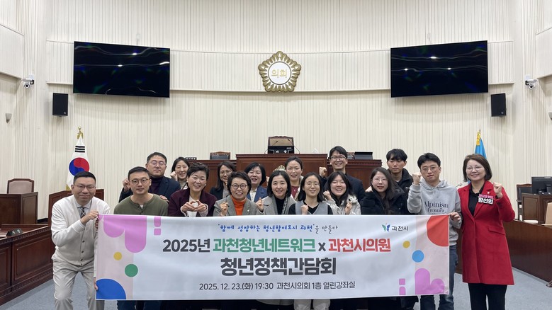 [세계타임즈=과천시 송민수 기자] 과천시는 지난 23일 과천시의회 열린강좌실에서 과천청년네트워크와 과천시의회 의원이 참석한 가운데 ‘함께 성장하는 청년참여도시 과천을 만들다, 2025년 과천시 청년정책 발전을 위한 청년정책간담회’를 개최했다고 밝혔다.