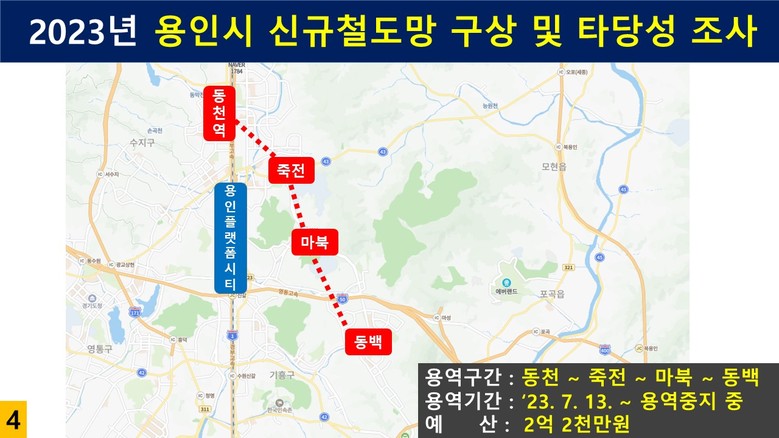 한편, 김 의원은 2023년에 추진됐다가 중지된 ’동천–죽전–마북–동백 철도망 구축 용역‘의 중단 배경을 질의하며, 동백–신봉선과 동천–죽전–마북–동백 철도망의 연계 필요성을 강조했다.