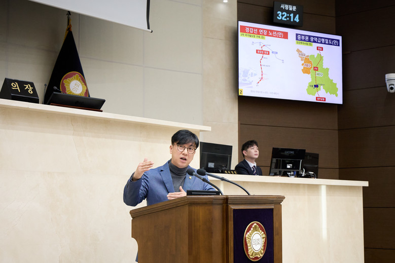 김 의원은 ”용인시 발전을 위해 어느 노선이 더 적합하다고 판단하는지 명확한 입장을 밝혀 달라“며, 특히 민간제안 방식인 JTX 추진 시 용인시 재정 부담을 면밀히 검토했는지 여부를 질문했다.