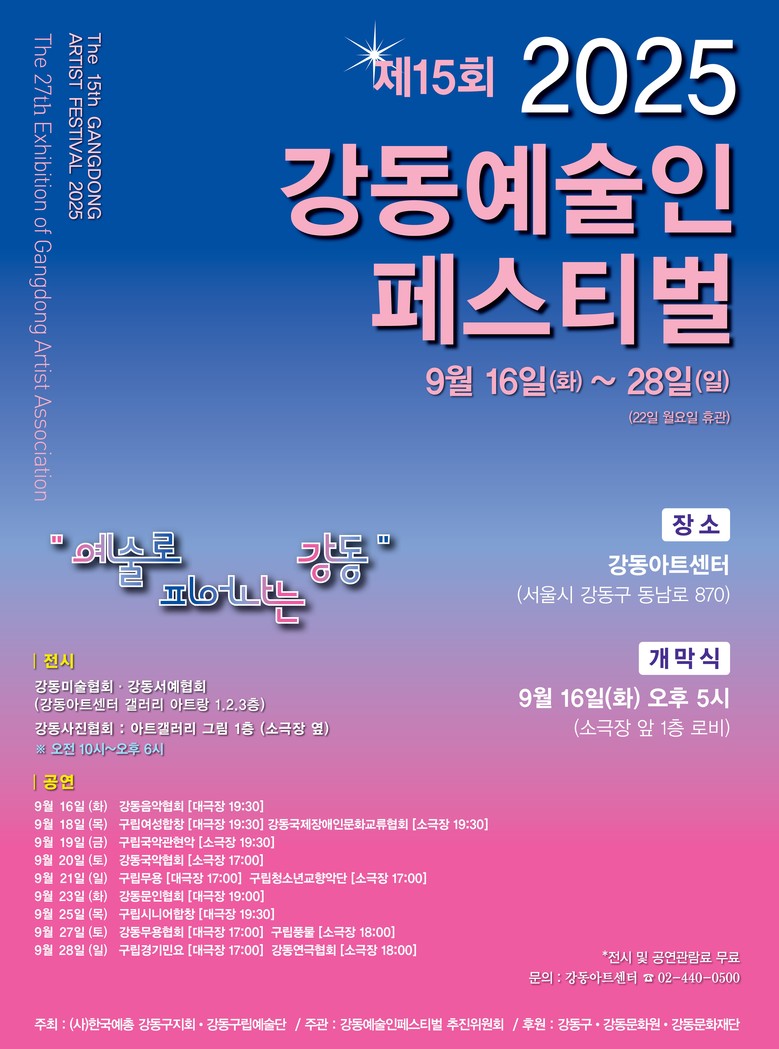 - 강동예술인총연합회 주관으로 강동아트센터에서 열리는 강동예술인 페스티벌