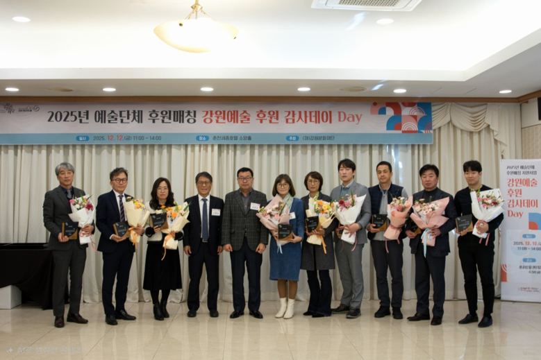 이날 행사는 신현상 강원문화재단 대표이사, 최병갑 강원특별자치도 문화예술과장, 예술단체 및 후원기업 관계자 등 총 30여 명이 참석한 가운데, 후원금 모집 관련 공모사업으로는 올해부터 처음으로 시도한 「2025년 예술단체 후원매칭 지원사업」의 성과를 공유하고, 사업에 참여한 9개의 후원기업에 감사패를 전달하며 지역 문화예술 발전에 기여한 공로를 인정했다.