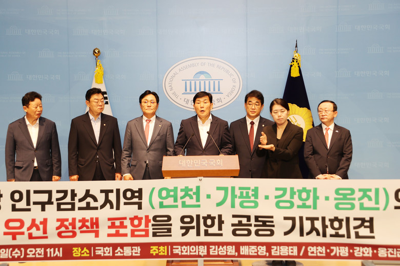이날 기자회견에는 김성원(동두천·양주·연천), 배준영(중구·강화·옹진), 김용태(포천·가평) 국회의원을 비롯해 4개 군 단체장이 참석, “수도권 내 인구감소지역도 비수도권 지역과 동일하게 국가 정책의 우선 지원 대상에 포함시켜야 한다”는 공동건의문을 발표했다.