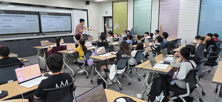 학생들은 코딩과 애니메이션 기능을 활용해 가상의 친환경 축사를 제작하고, 이를 바탕으로 그림책을 만들어 발표하며 창의적 문제 해결 능력을 기르는 시간을 가졌다.