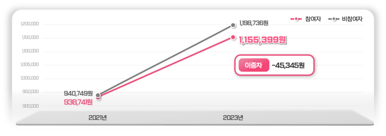 <사업시작 ’21년과 ’23년 비교, 참여자 연평균 의료비, 비참여자 比 4만5372원 덜 늘어>