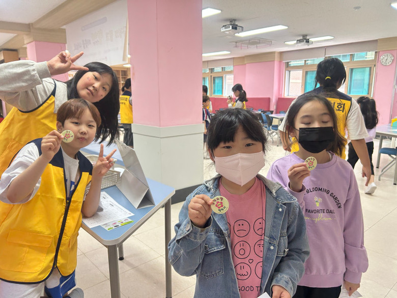 학생들은 행사장에 전시된 ‘긍정의 말 대형 포스터’를 보고 자신의 카드에 따뜻한 말을 적고 꾸민 뒤, 친구와 카드를 교환하며 ‘짧은 우정 미션’을 수행하였다. “친구야, 넌 최고야!”, “내가 제일 좋아하는 너의 모습은 웃는 얼굴이야!” 등 친구에게 따뜻한 말을 전한 뒤, 참가 인증 뱃지와 간식을 받으며 즐겁게 마무리했다. 특히 참가 인증 뱃지는 학생자치회 학생 위원들이 디지털 이미지로 직접 제작하여 만든 만큼 학생자치회 구성원이나, 참가하는 전교생에게도 의미가 컸다.