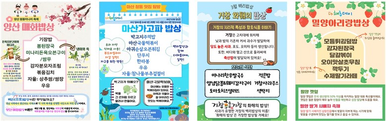 경남교육청은 ‘백리밥상’을 추진하기 위해 매월 급별(유치원·초등, 중등) 지역 특성을 반영한 4종의 식단과 교육 자료를 보급한다. 이는 생태전환교육의 하나로 실시하는 채식 급식 ‘다채롭데이’를 포함한 학생 기호, 유행을 반영한 식단으로 학교급식의 만족도를 높이는 데 이바지할 것으로 기대한다.
