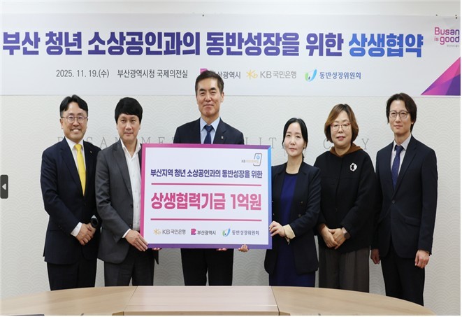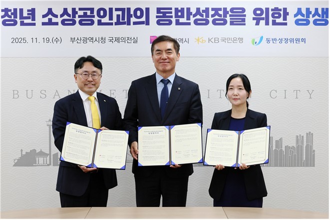◈ 인구감소지역 및 인구감소관심지역 청년 소상공인과의 동반성장 문화 확산을 위해 마련… ▲[시] 정책적·행정적 지원 등 ▲[케이비(KB)국민은행] 협력과제 운영을 위한 대·중소상생협력기금 출연 등 ▲[동반성장위원회] 상생협의회 운영 및 상생협력기금 관리 등 역할 맡아 [세계타임즈=부산 이용우 기자] 부산시(시장 박형준)는 부산 지역 청년 소상공인과의 동반성장을 위해 케이비(KB)국민은행-동반성장위원회와 어제(19일) 오후 2시 20분 시청 국제의전실에서 상생협약을 체결했다고 밝혔다.