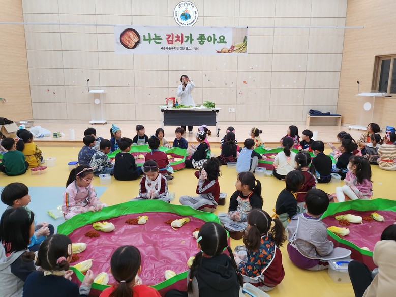 [시흥시 세계타임즈=송민수 기자] 시흥가온유치원(원장 강정숙)은 2023.11.16.(목) 시흥가온유치원에서 전교 유아들과 선생님들이 참석한 가운데 ‘나는 김치가 좋아요.’라는 주제로 김장 담그기 행사를 진행하였다.